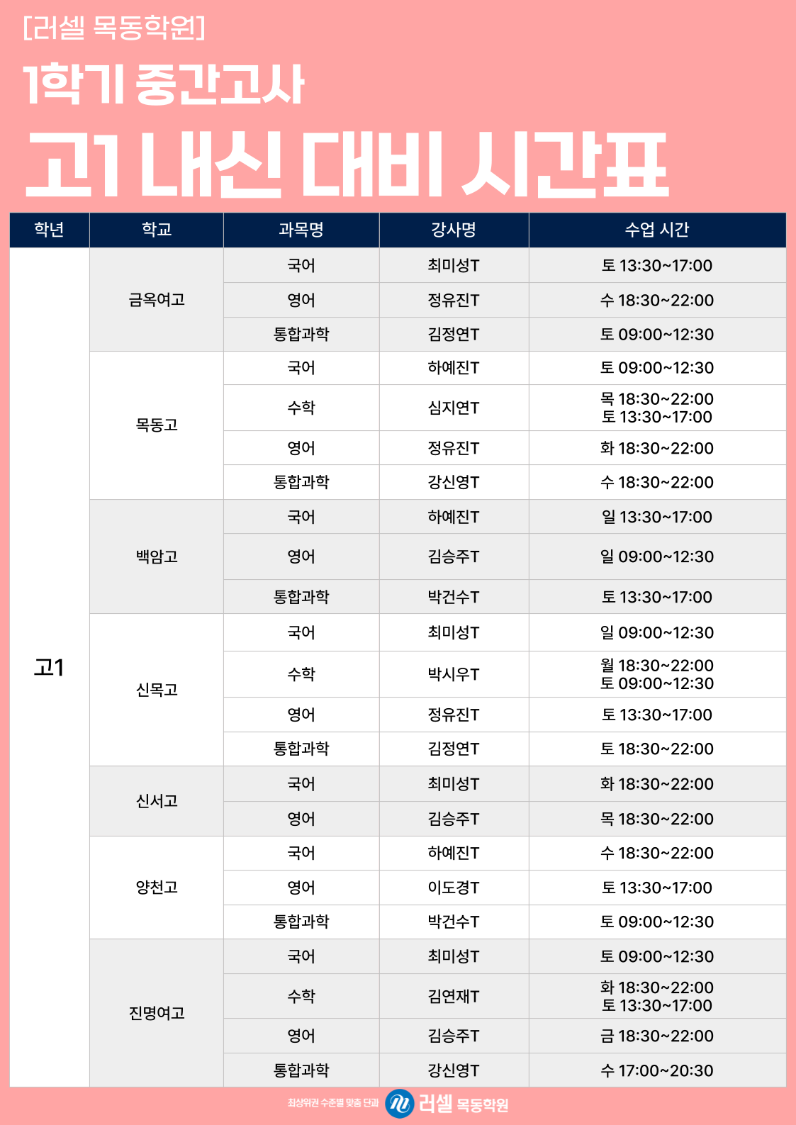 · °ú¸ñº°·°úÁ¤º° ÁýÁß ÇнÀ ´Ü°ú£ü³»½Å°ü